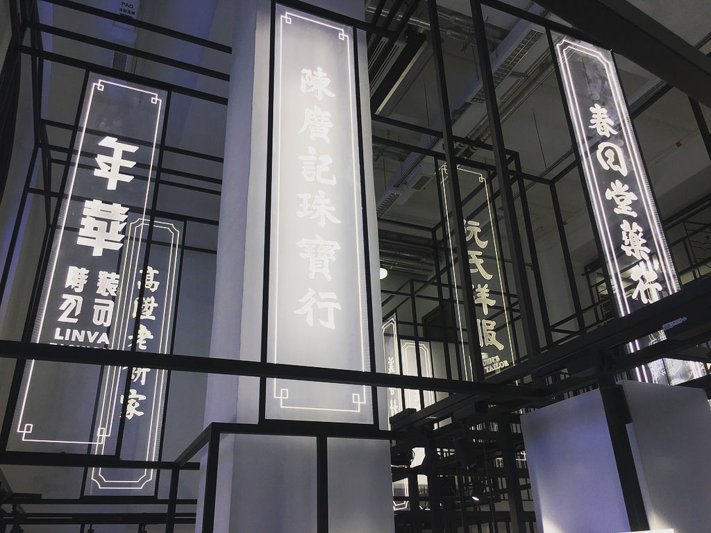 用這種光招牌的方式,以新手法重現舊香港的特色,每塊招牌底下都有個這些象徵性商家的介紹,我覺得字體也是很有味道,各顯不同特色,吸引人打卡很好的方式。